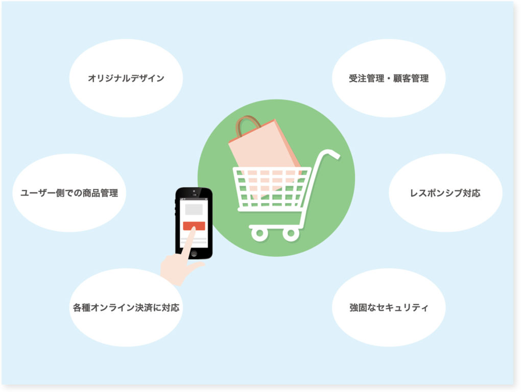 標準搭載された豊富な機能に加え、数多くのプラグイン(アプリ)によって理想的なECサイト構築・運用を実現させます。